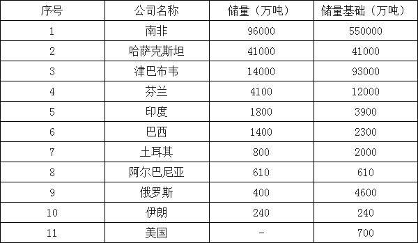 世界鉻鐵礦儲(chǔ)量和儲(chǔ)量基礎(chǔ)(商品級(jí)礦石)