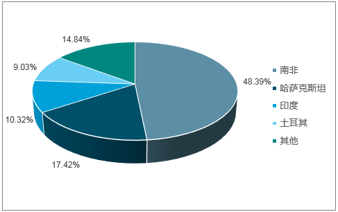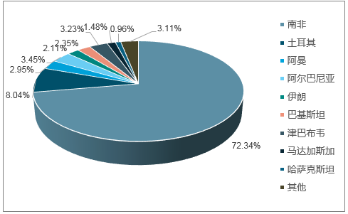 2017年我國(guó)鉻礦進(jìn)口數(shù)量國(guó)別占比