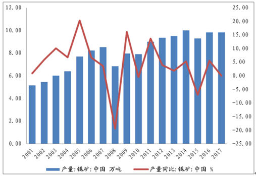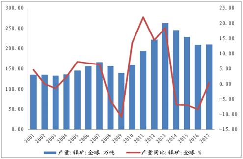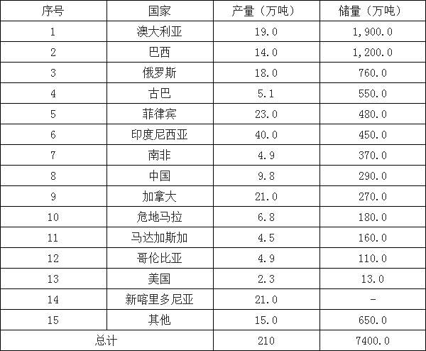 2017年世界鎳礦產(chǎn)量及儲(chǔ)量