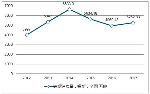 我國(guó)鎳礦表觀消費(fèi)量(萬(wàn)噸)