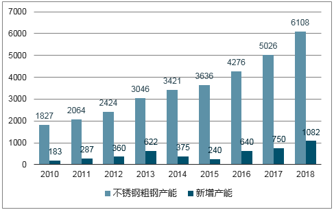 我國(guó)不銹鋼產(chǎn)能及新增產(chǎn)能變化(萬(wàn)噸)