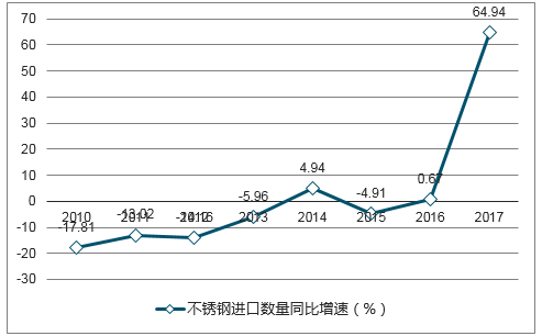2009-2017年我國(guó)不銹鋼進(jìn)口數(shù)量同比變化(%)