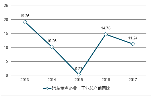 汽車(chē)重點(diǎn)企業(yè)工業(yè)總產(chǎn)值同比變化(%)