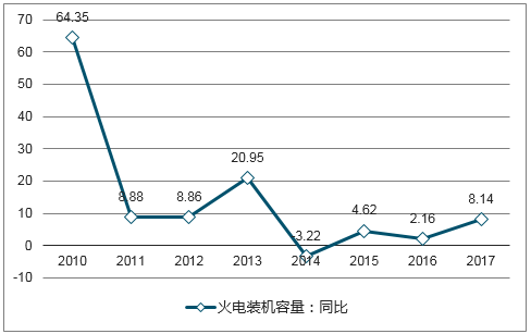 2009年-2017年國(guó)家電力火電裝機(jī)容量同比變化(%)