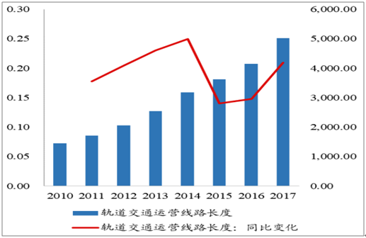 我國(guó)城市軌道交通運(yùn)營(yíng)里程數(shù)同比變化(%)