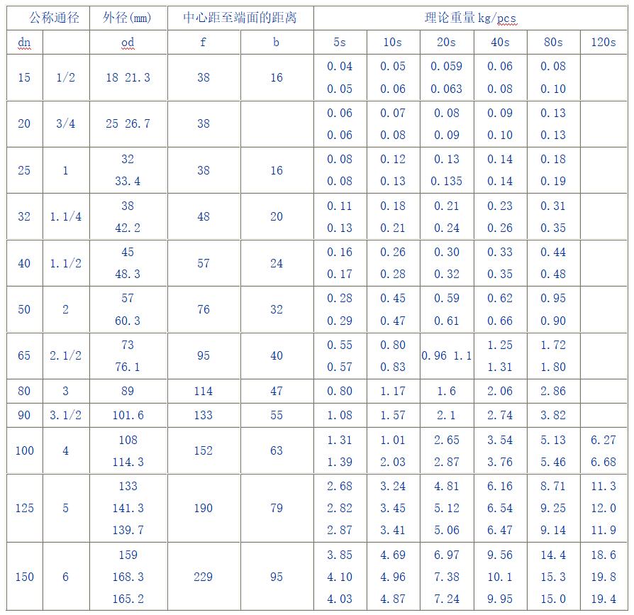 不銹鋼彎頭標準尺寸表